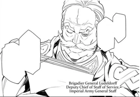 - His name is a reference to Erich von Ludendorff , a notable known German general during World War I, responsible for several victories in the eastern front and the adoption of deep defense doctrine. However, his character seems to be a mixture between Ludendorff and Hindenburg.